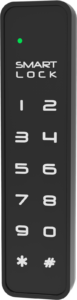 Designed to unlock through a clean touch-button keypad interface for convenient access.