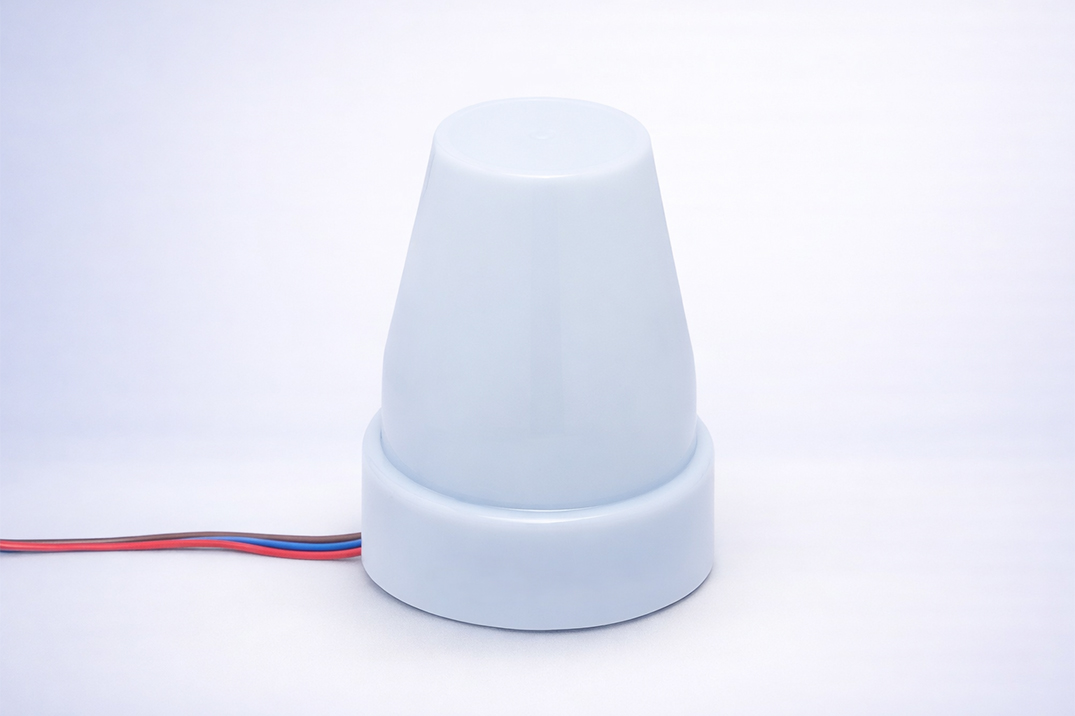 Automatically switches lights based on 5–50 LUX adjustable settings.