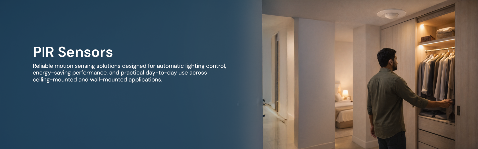 With ceiling-mounted and wall-mounted options available, the PIR sensor range offers practical solutions for corridors, staircases, entrances, washrooms, office areas, and other commonly used spaces where automatic switching improves both convenience and control.