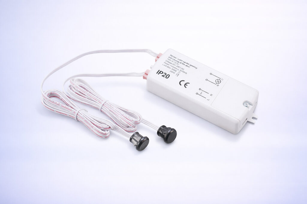 This sensor is ideal for concealed or surface-mounted applications in kitchens, dressing areas, and closets. When either door is opened, the sensor activates the connected lighting; once both doors are closed, the lighting automatically switches off, enhancing convenience and energy savings.